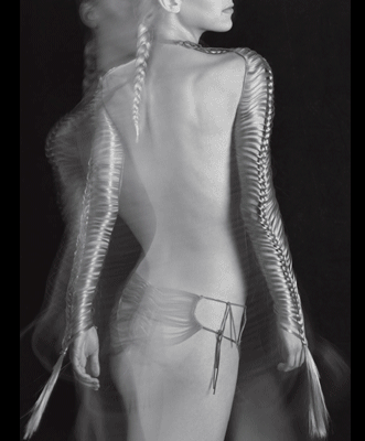 Chez Shiseido La Beauté, le cheveu se fait vêtement, se drape et se porte à même la peau. Reflets noirs irisés, dialogues intimes entre le corps et la matière, s’immiscent dans un espace clos de portes cadenassées, une sorte de chambre noire, où les transferts capillaires signés Yoichi Nagasawa et Helmut Lang prennent vie sous le regard expérimental du photographe Edward Mapplethorpe.